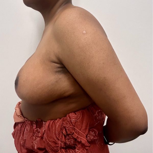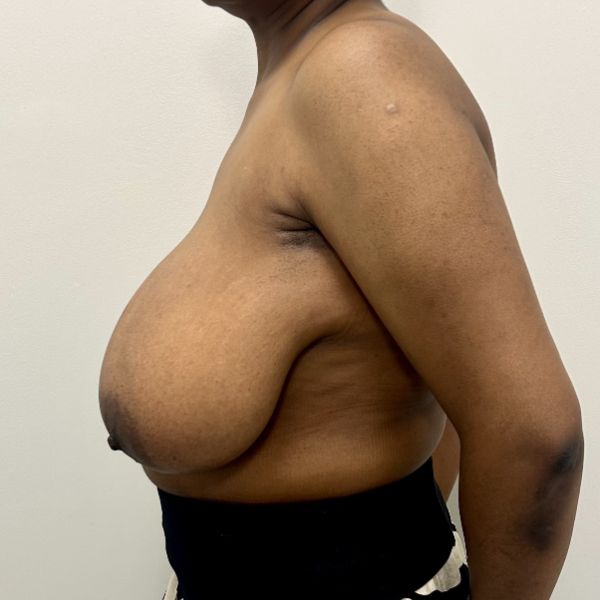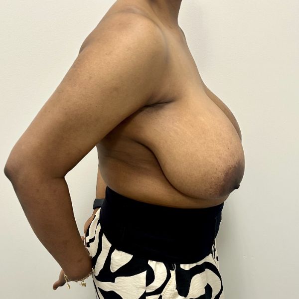 This patient had experienced symptomatic macromastia for over 35 years, reporting chronic upper back, neck, and shoulder pain, as well as difficulty finding supportive garments and discomfort during physical activity. Despite her long-standing symptoms, a demanding professional and personal life had delayed surgical intervention.